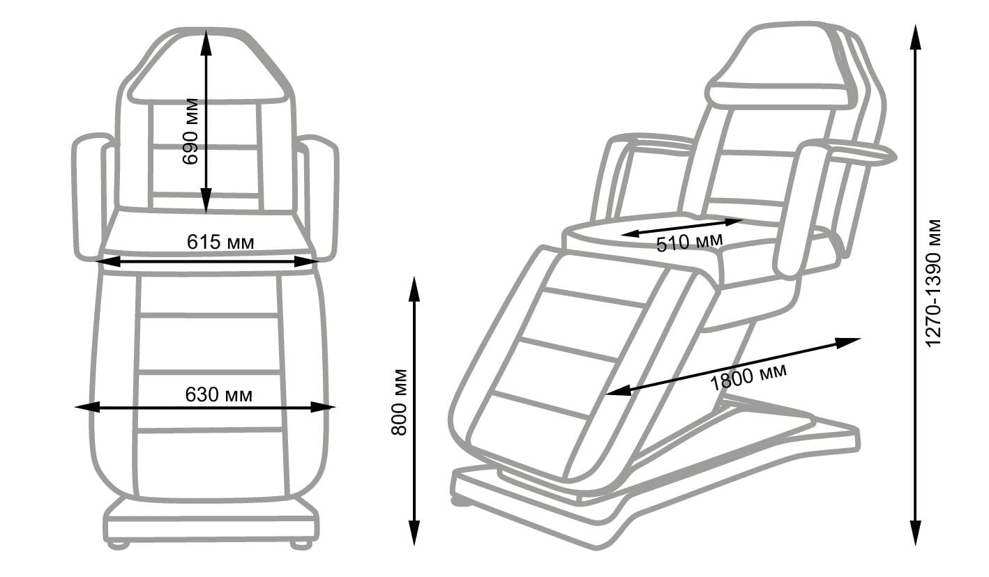 Купить кресло косметологическое МД-836 (Элегия-3С), 3 мотора можно учитывая его размеры: