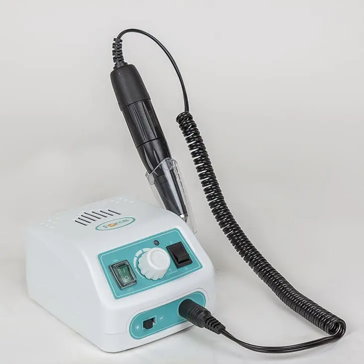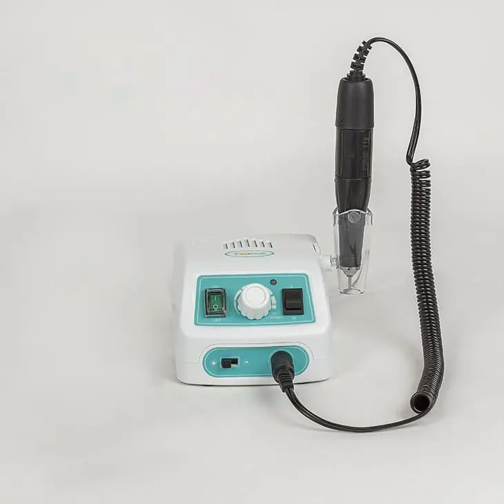 Комплектация: блок питания, держатель для наконечника, рукоять с микродвигателем, электрический шнур, инструкция, сумка, ножная педаль.
