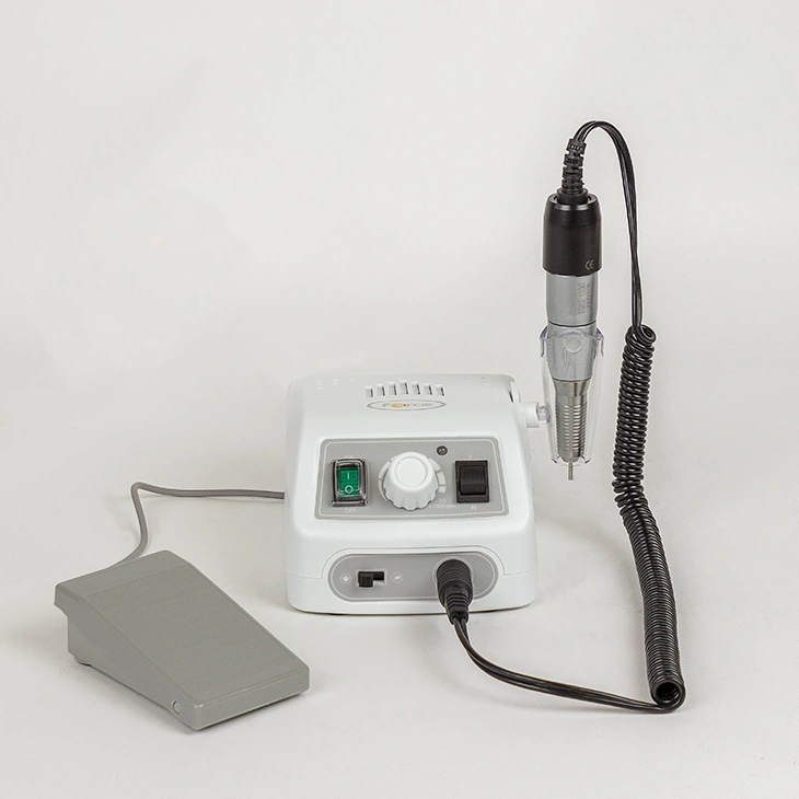 Маникюрный аппарат обладает мощностью в 60 Ватт и достигает 30000 оборотов в минуту. Во время работы ручка фрезера не нагревается благодаря системе охлаждения. Фреза не создает вибраций, что дает возможность сделать идеально ровную поверхность. Легкий вес наконечника и удобная форма предотвратят усталость рук мастера в процессе работы.
