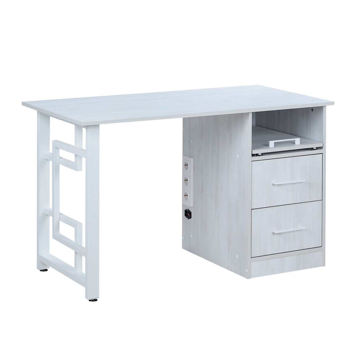 Комплектация: столешница, каркас, 1 тумба, 2 ящика, 1 полка