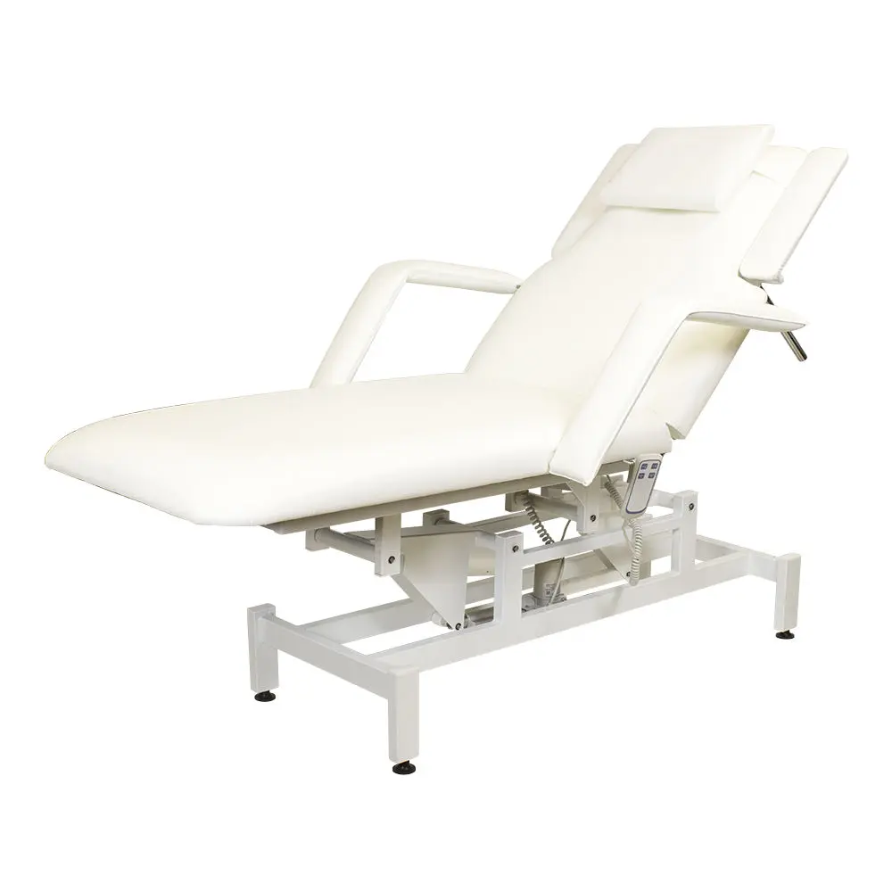 Комплектация: кушетка, подлокотники, съемная подушка, металлические элементы каркаса и основания, электропривод с двумя электромоторами и дистанционным пультом управления.