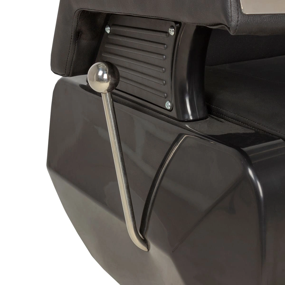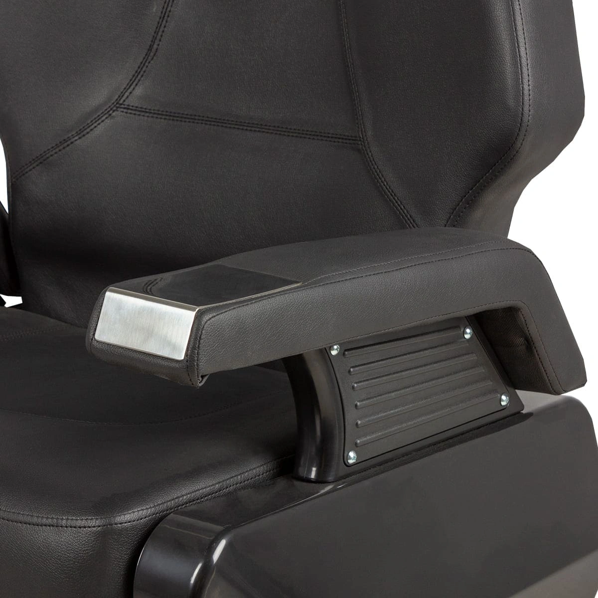 Массивное кресло оснащено удобными подлокотниками и мягким подголовником. Широкое посадочное место обеспечит комфорт во время проведения процедур. Практичная подножка предотвратит усталость ног клиентов.