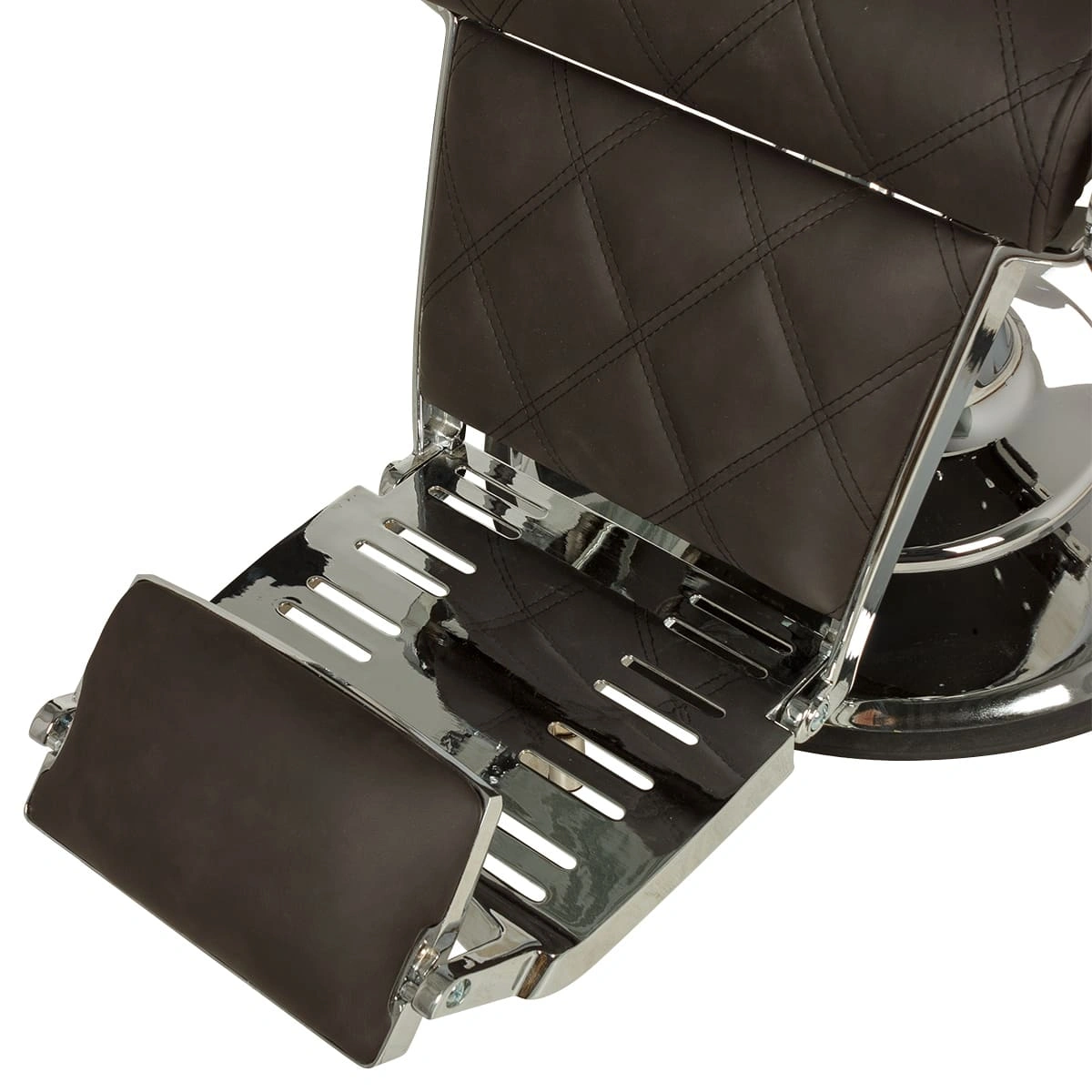 Процедура бритья требует обязательной фиксации головы, поэтому в кресле предусмотрен мягкий выдвижной подголовник. Подножка позволит удобно разместиться клиенту и предотвратит затекание ног.