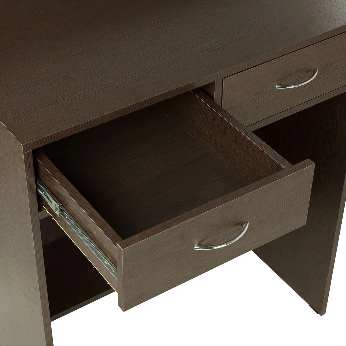 Стойка для администратора представляет собой двухстороннюю конструкцию. Внешняя часть, обращенная к клиенту, установлена выше уровня груди клиента. Благодаря этому посетителю не виден рабочий стол администратора и все, что на нем находится. Со стороны работника салона находится стол, на котором можно сложить необходимые документы, установить ноутбук и телефон. В двух выдвижных ящиках достаточно места для необходимых канцелярских предметов и личных вещей.
