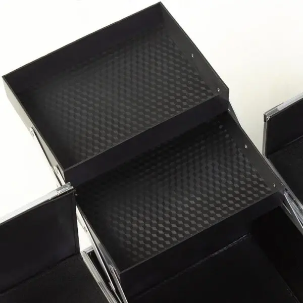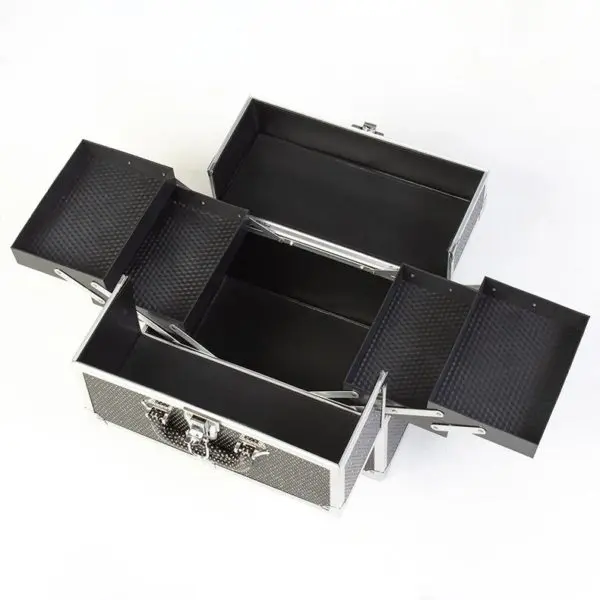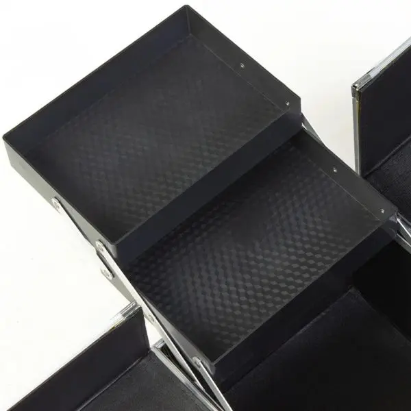 Для изготовления оборудования для визажистов использованы прочные и надежные материалы. Корпус выполнен из алюминия и пластика. В таком изделии все приспособления останутся под защитой от механических воздействий и влияния внешних факторов. Для очистки поверхностей не требуется особых усилий.