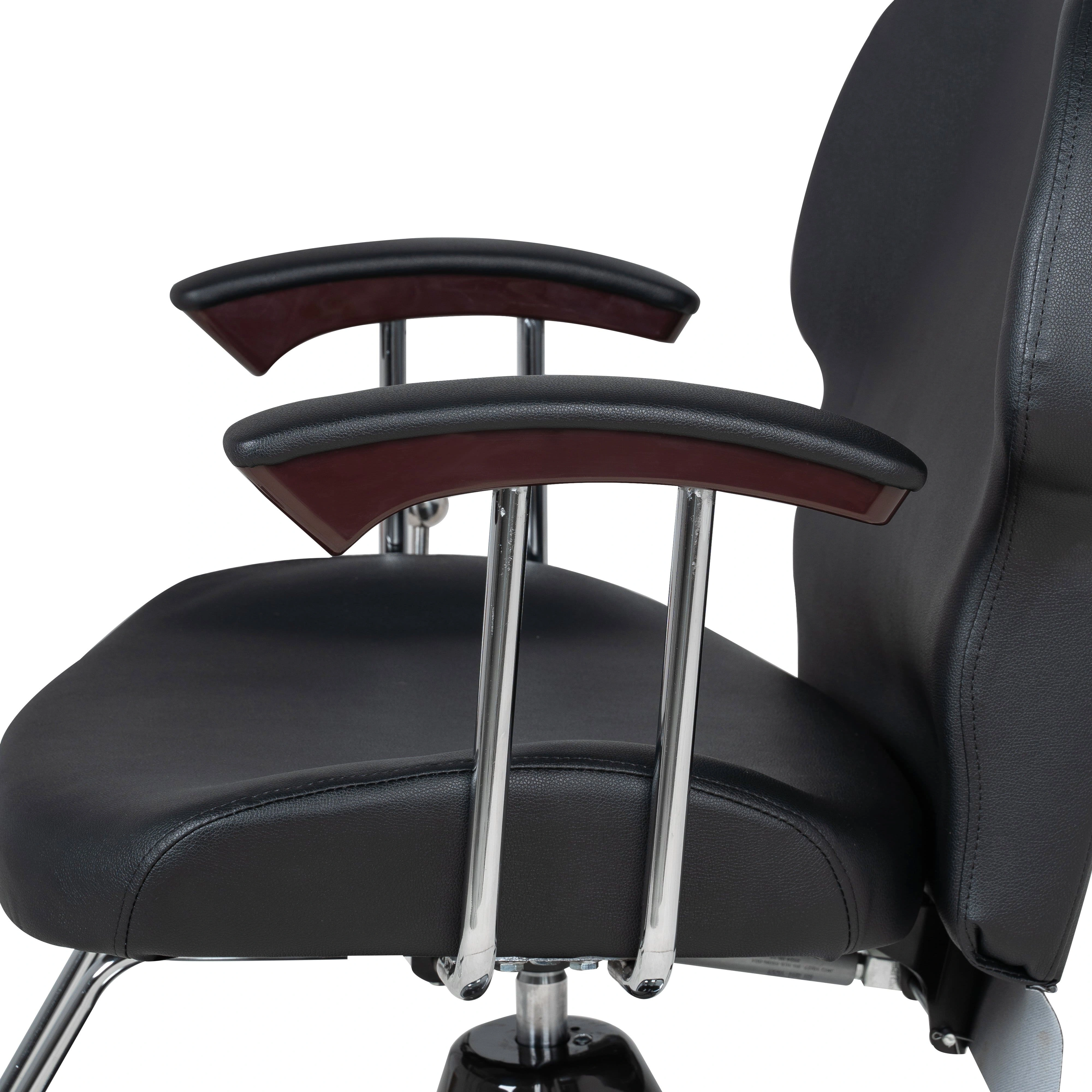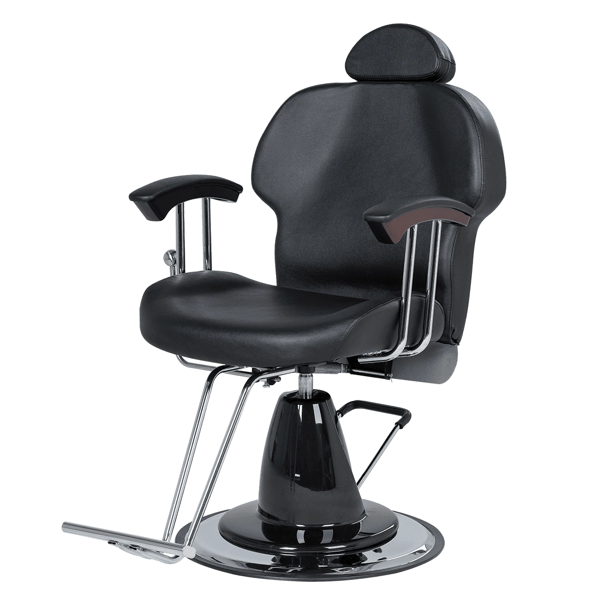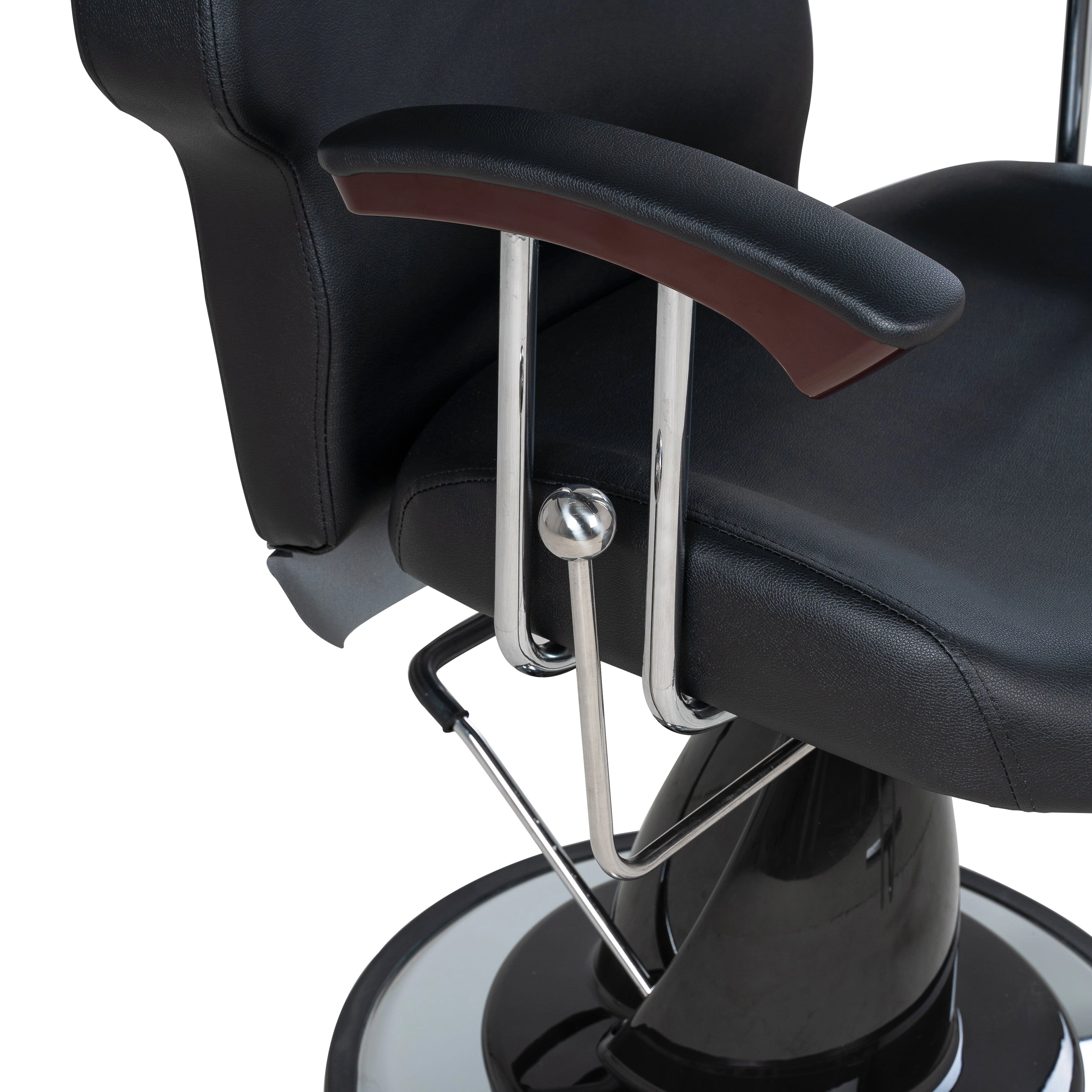 Спинка парикмахерского кресла откидывается, удобная изогнутая форма спинки повторяет положение тела. Выдвижной подголовник поддержит голову и шею клиента. Подножка из высокопрочного металла – ещё одно практичное дополнение. Она предупредит переутомление ног в течение длительных процедур.