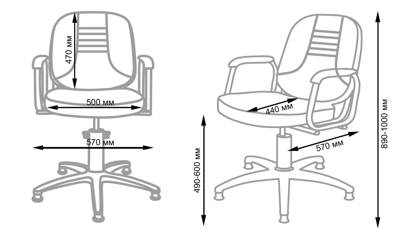 • Подлокотники: металлические с мягкими накладками