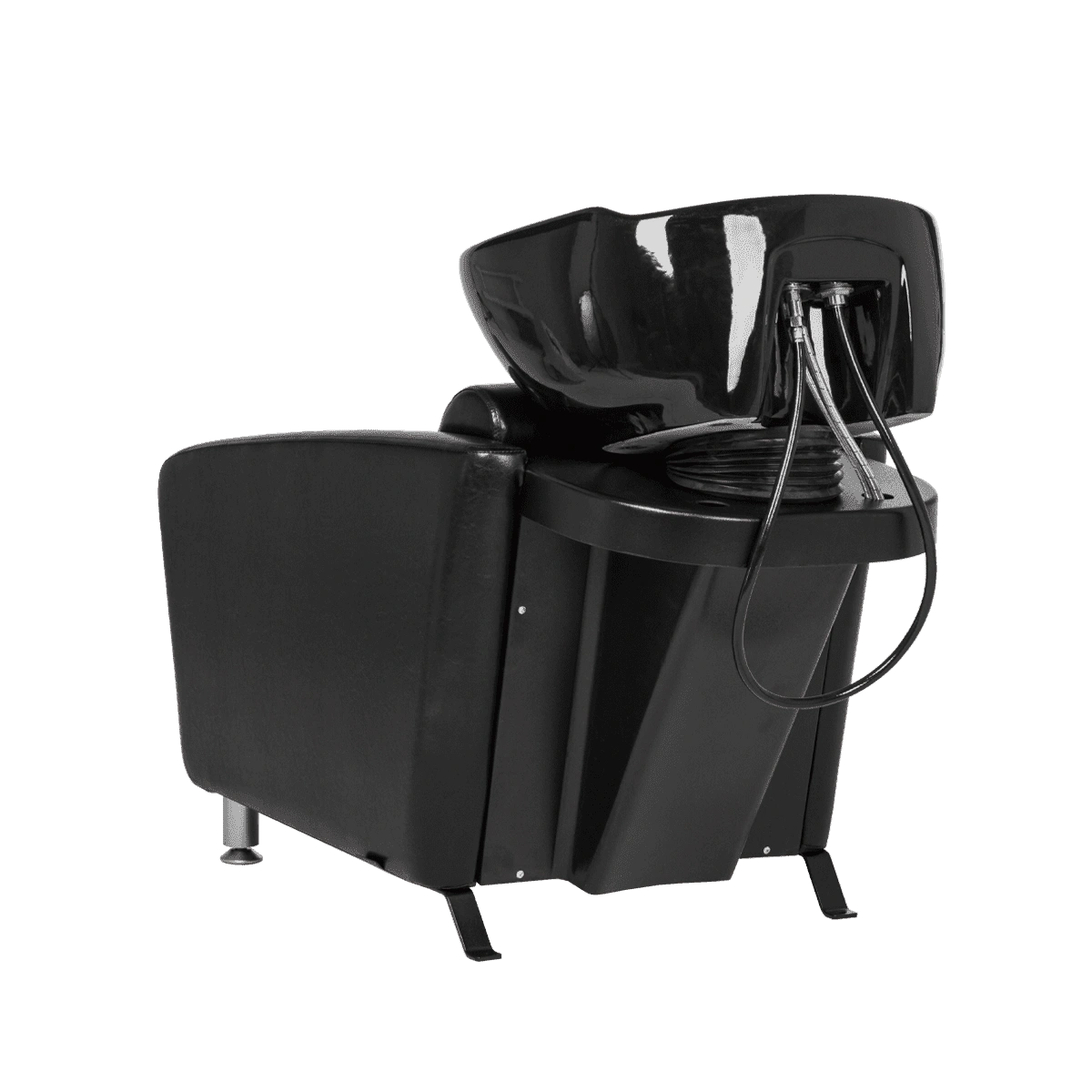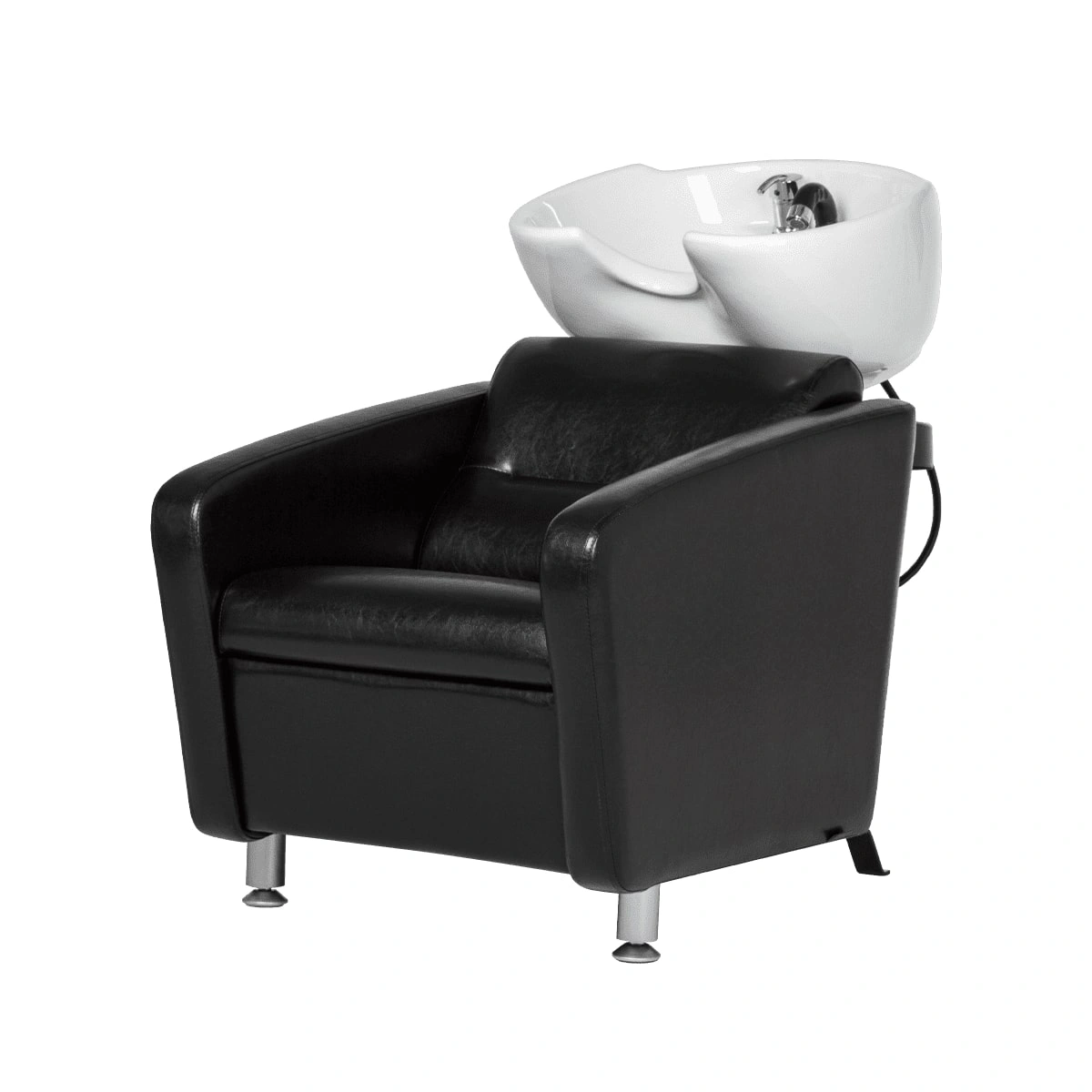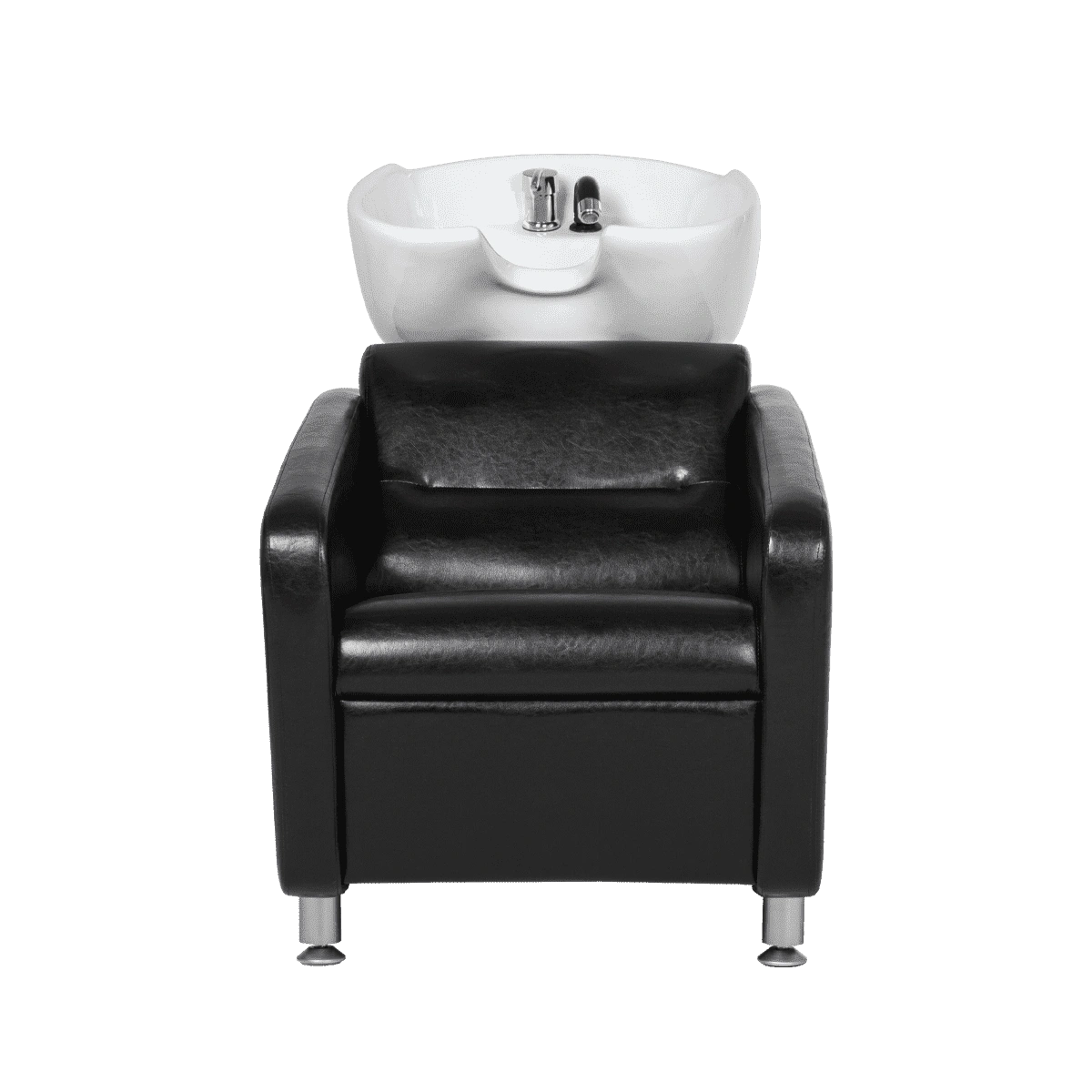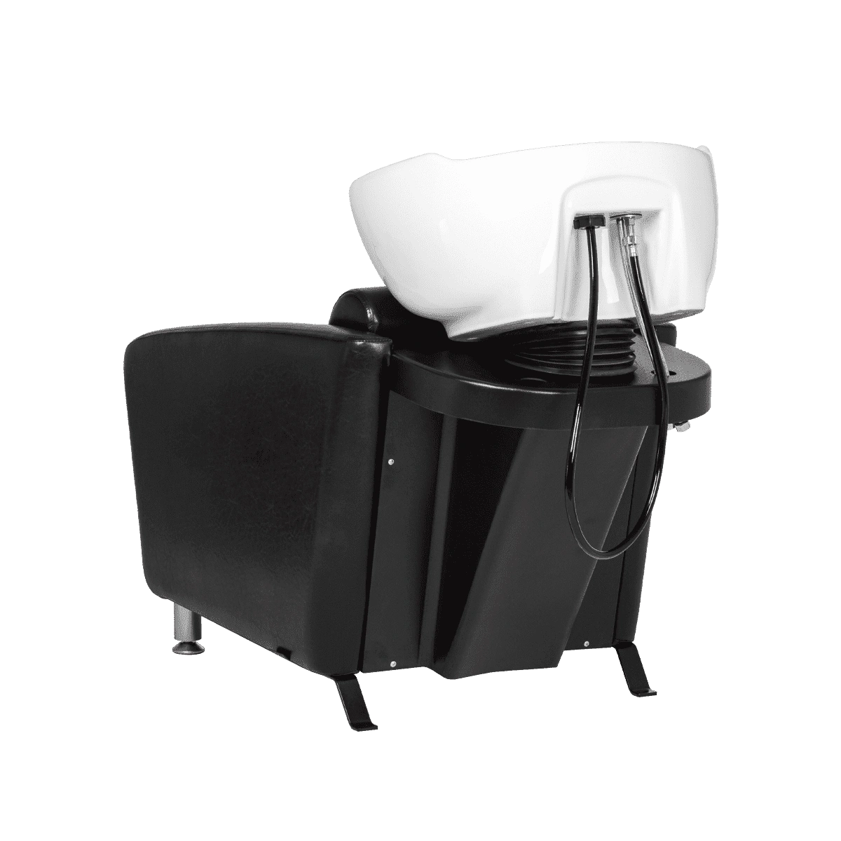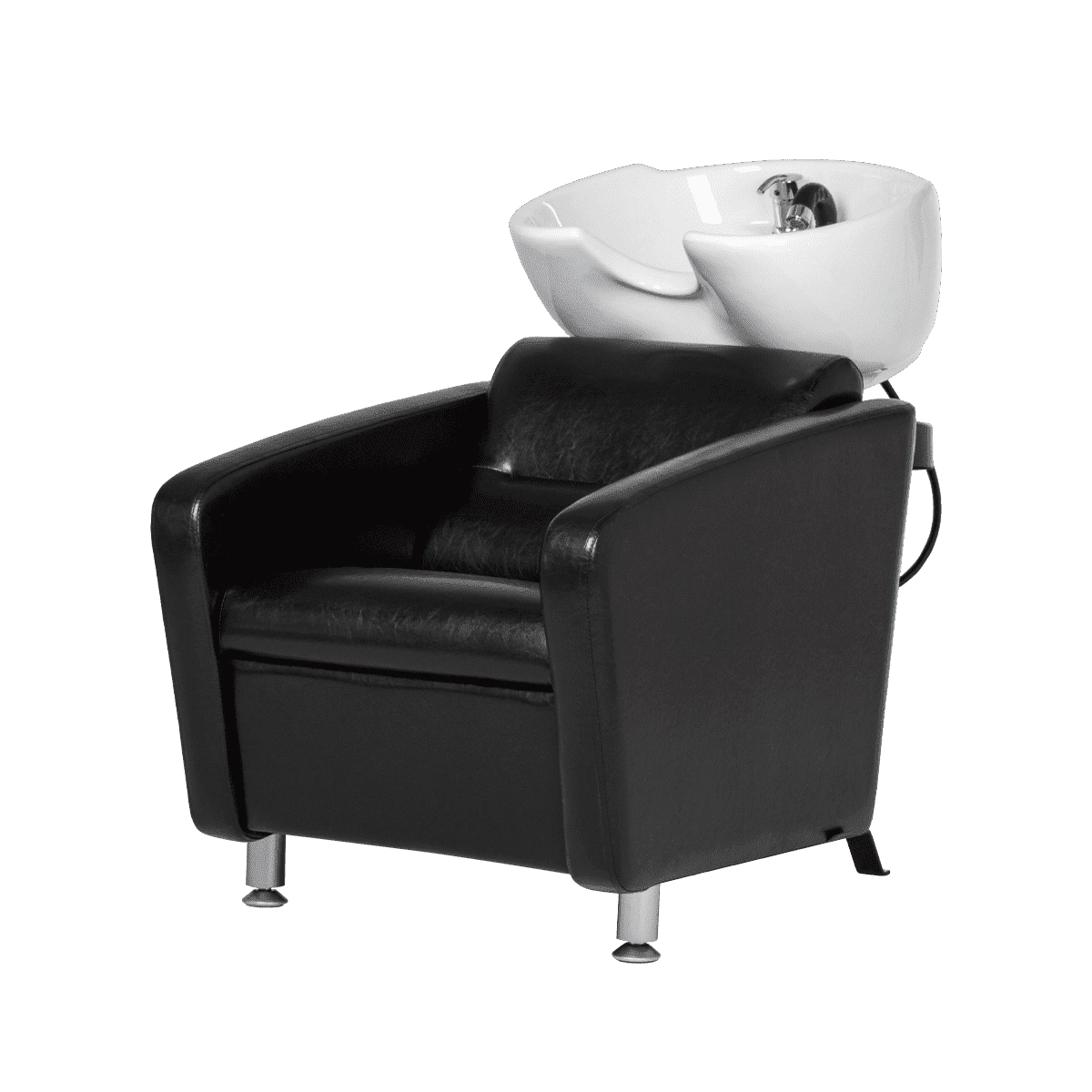 Каркас мойки изготовлен из прочного металла с влагозащитным покрытием черного цвета. Он прикреплен к спинке кресла, из-за чего конструкция не требует крепления к полу. Обивка кресла выполнена из качественной экокожи, устойчивой к воздействию воды и дезинфицирующих средств. Парикмахерская мойка МД-123 без регулировки ножной части от магазина МЭДИСОН поставляется в двух коробках. В комплект к мойке рекомендуем приобрести парикмахерское кресло МД-165 с аналогичным дизайном.
