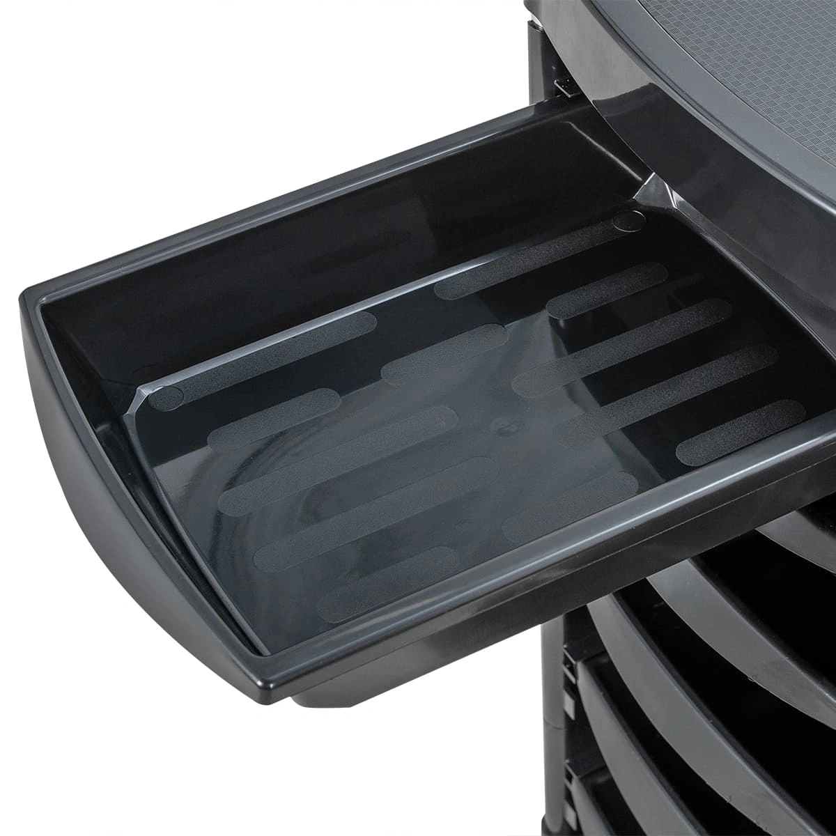 Основание парикмахерской тележки на 4 манёвренных прорезиненных колёсах, благодаря чему мастер сможет легко перемещать ее в рабочей зоне, не прерывая рабочий процесс.