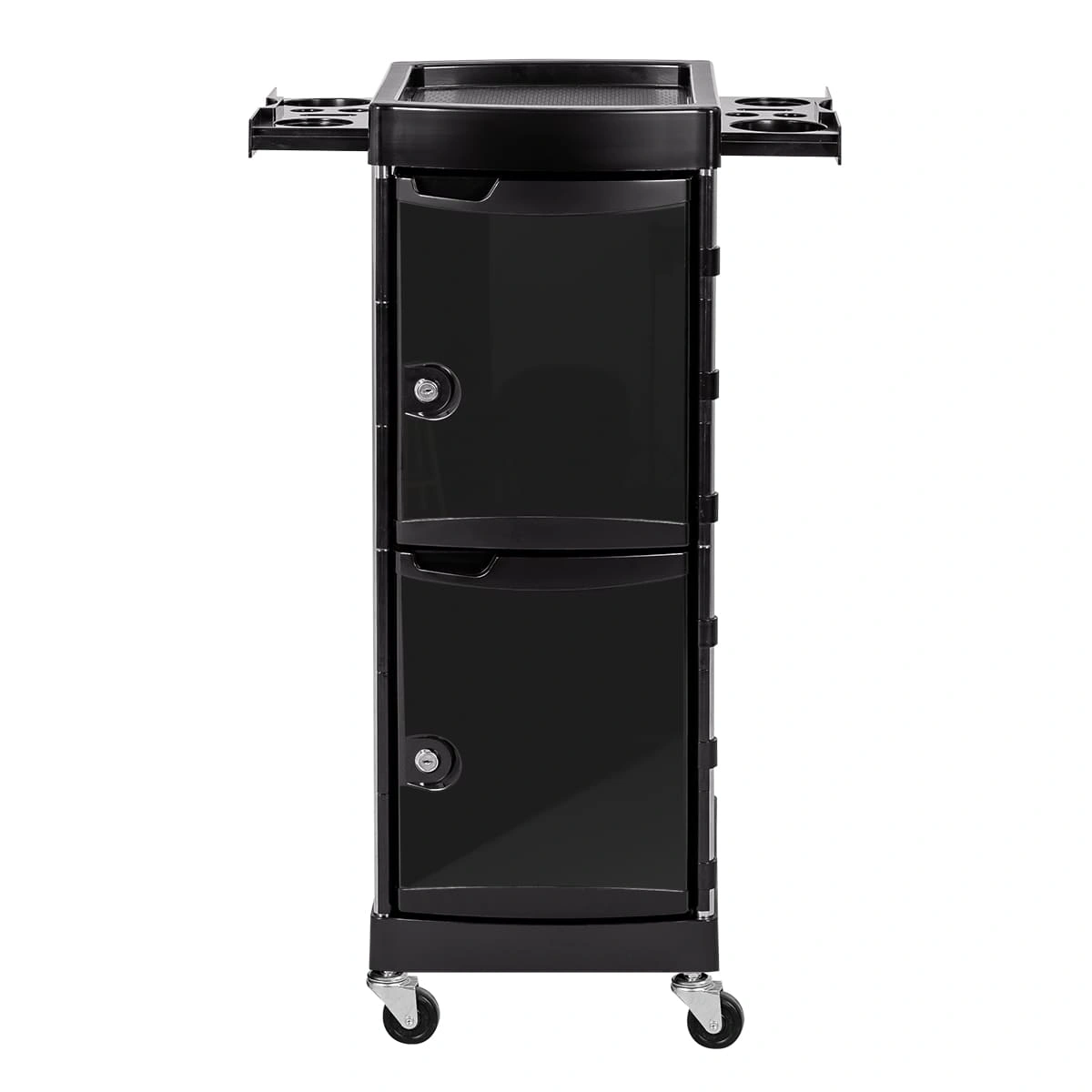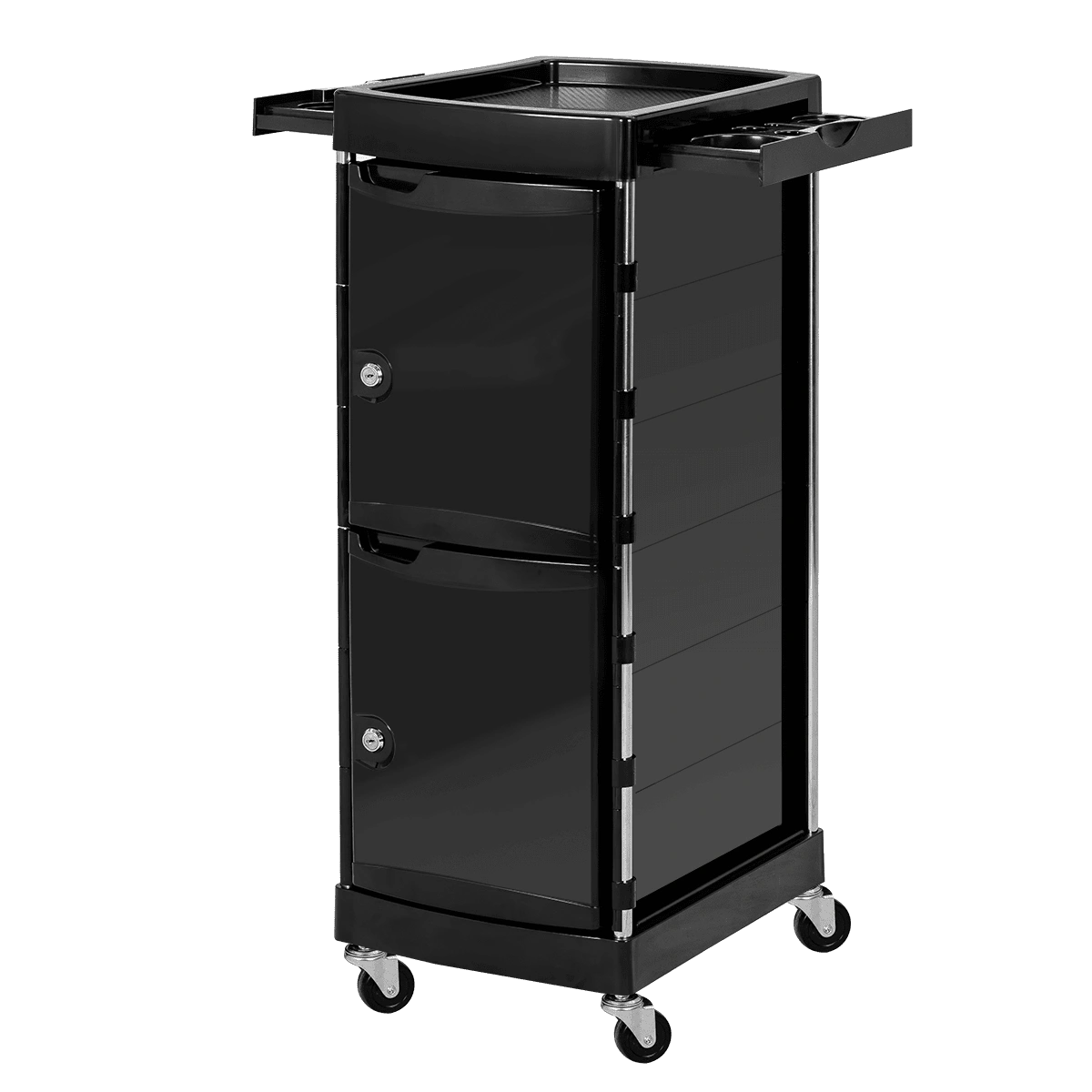 Парикмахерское оборудование изготовлено из качественных материалов. Тележка установлена на прочный металлический каркас. Для создания полочек, ящиков, закрытых боковин использован ударопрочный пластик.