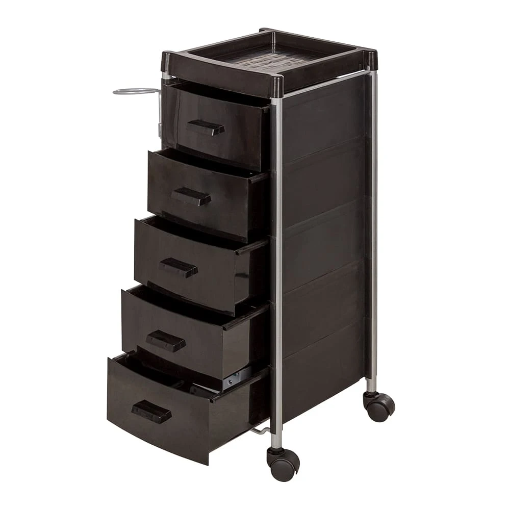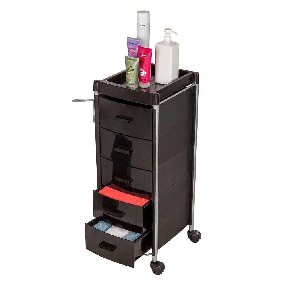 На верхней полке можно разложить инструмент первой необходимости. Остальные приспособления и косметологические средства можно компактно разместить в ящиках. С маневренными колесами мастер может перемещать парикмахерское оборудование по рабочей зоне. Благодаря компактным размерам тележка подойдет даже для помещений с малой площадью.