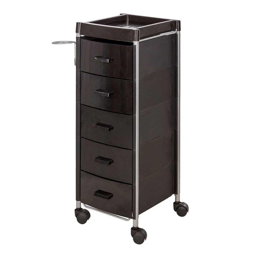 На верхней полке можно разложить инструмент первой необходимости. Остальные приспособления и косметологические средства можно компактно разместить в ящиках. С маневренными колесами мастер может перемещать парикмахерское оборудование по рабочей зоне. Благодаря компактным размерам тележка подойдет даже для помещений с малой площадью.