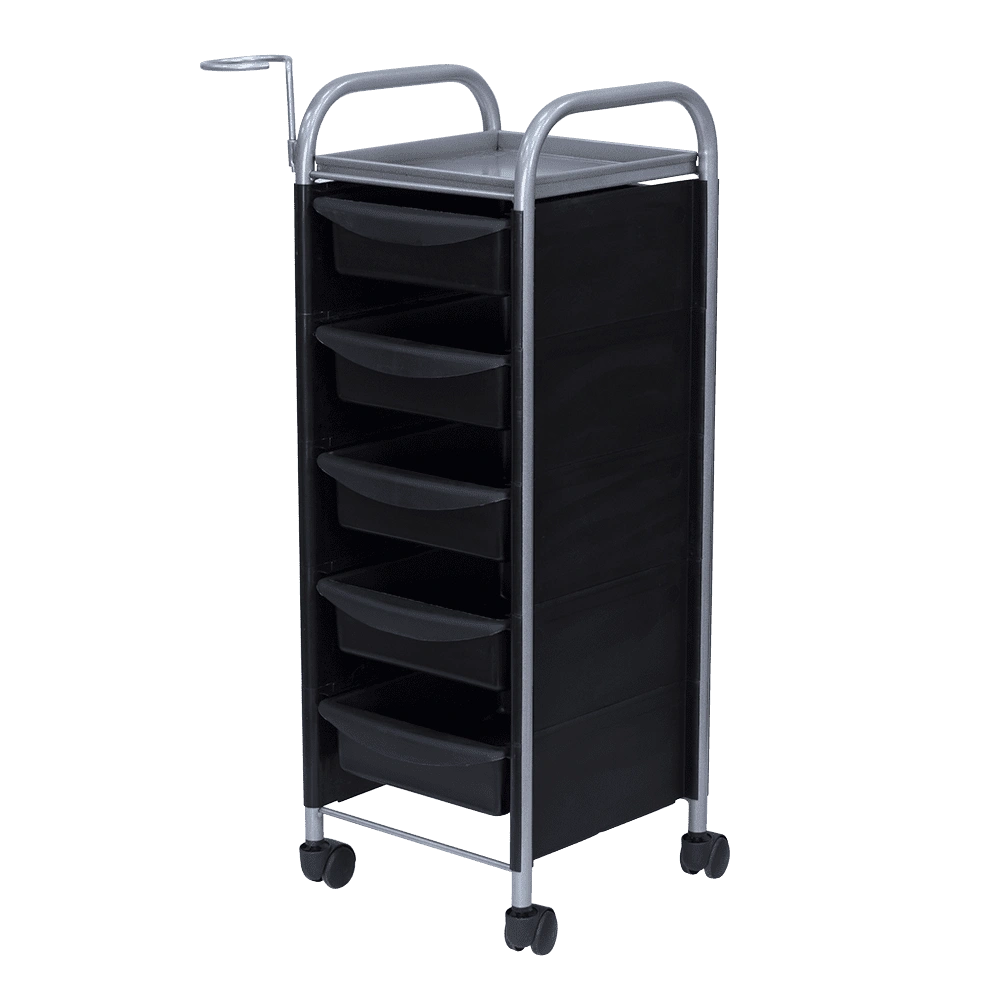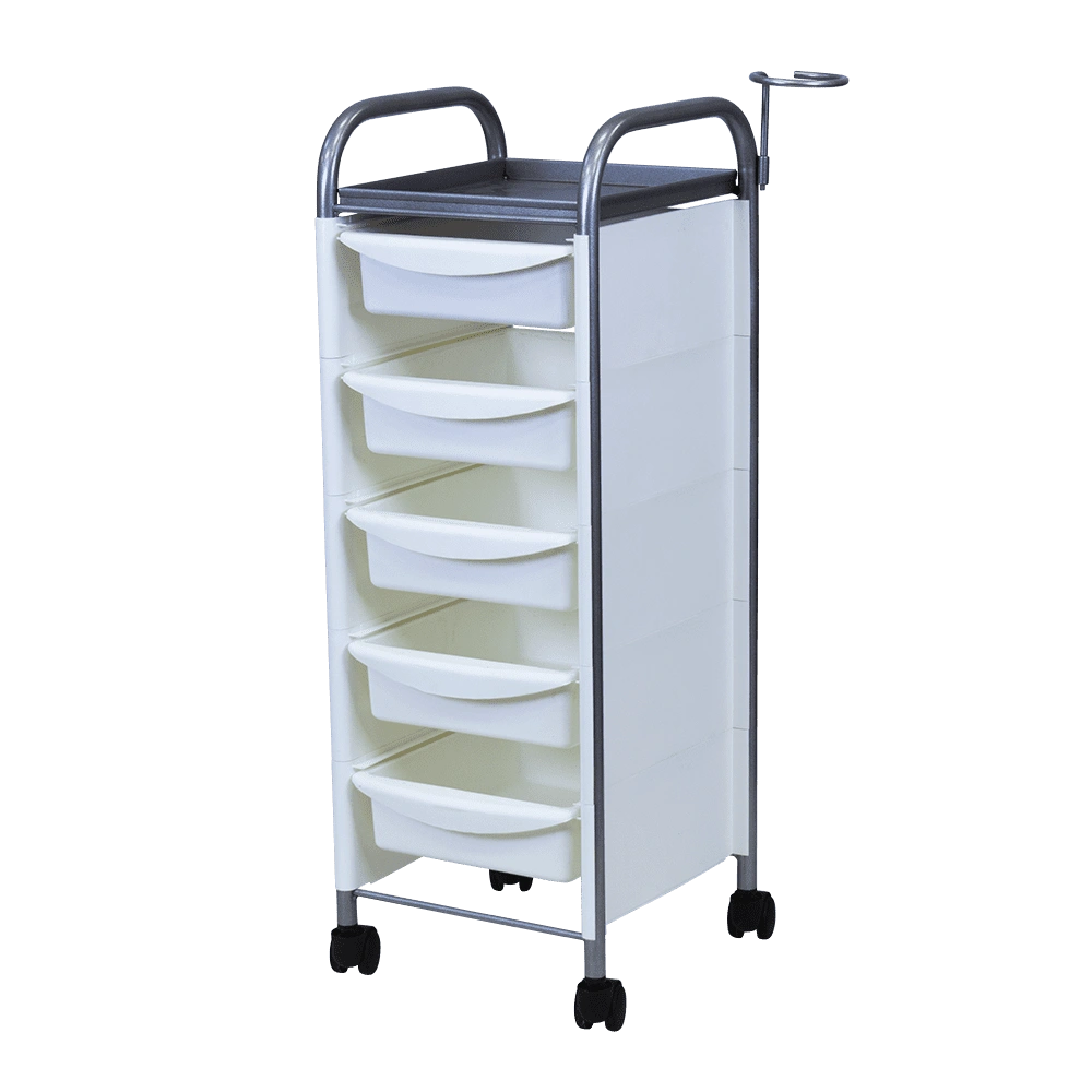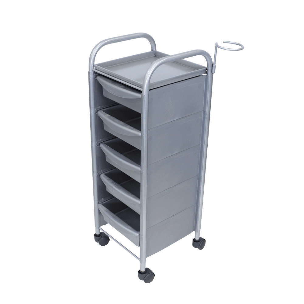 Купить тележку парикмахерскую М-02 серый можно с пятью вместительными выдвижными ящиками из ударопрочного пластика. Также для инструментов и прочих рабочих принадлежностей предусмотрена функциональная полочка. Для дополнительного удобства во время работы к каркасу прикреплен съемный фенодержатель. В нашем магазине парикмахерская тележка М-02 представлена в черном, сером, красном и белом цвете.