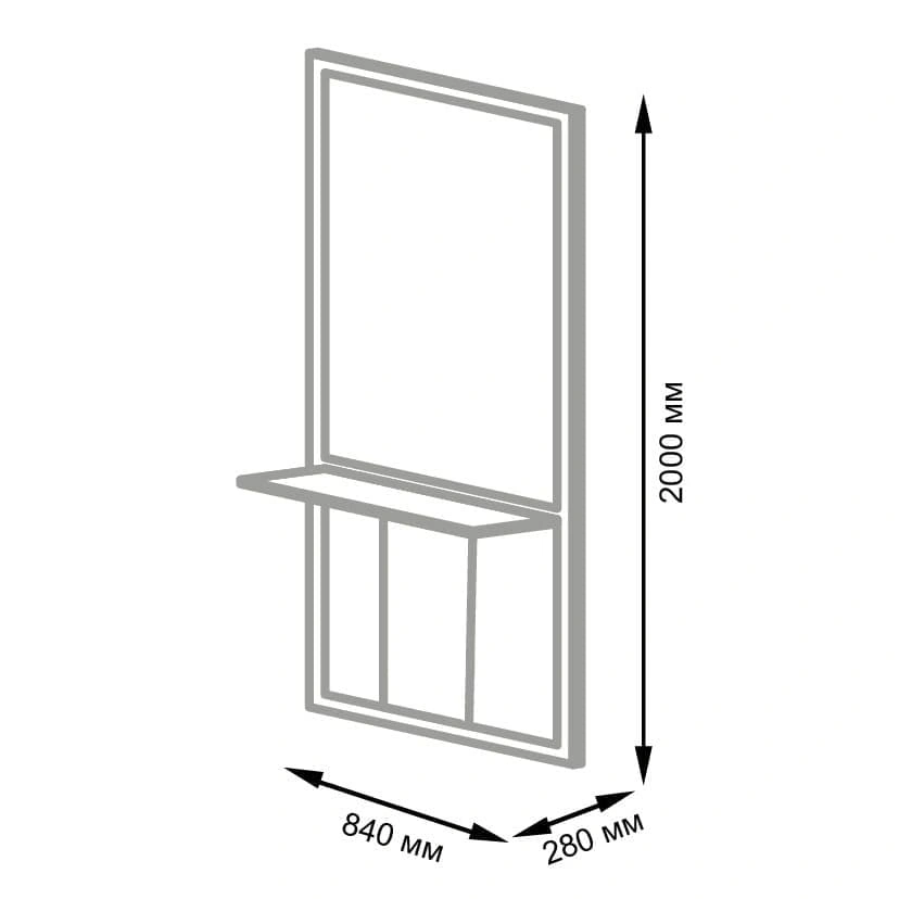 Комплектация: основа, зеркальное полотно, полка, подставка для ног.