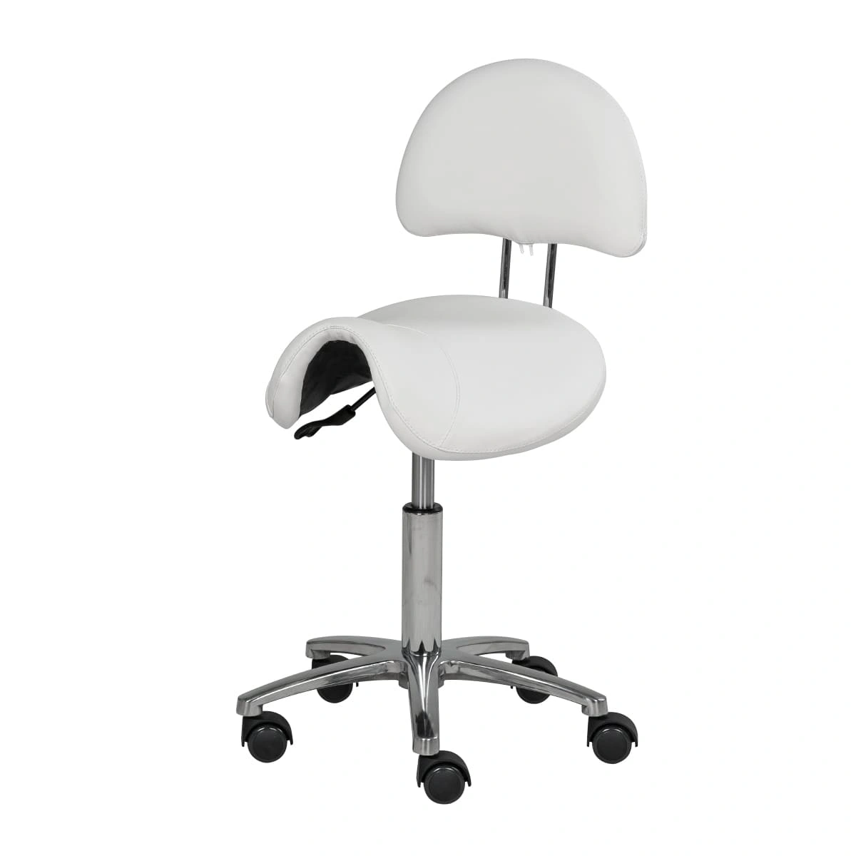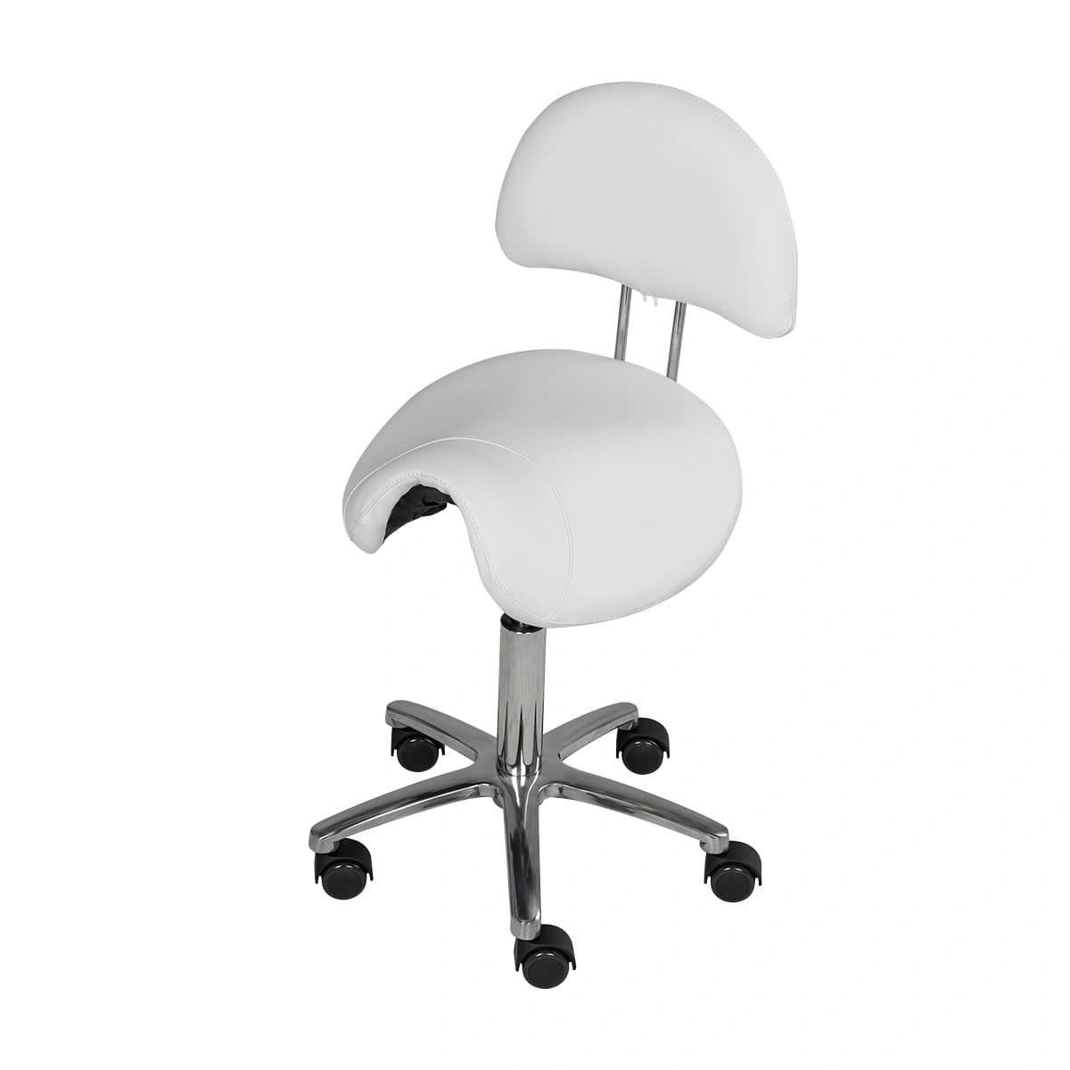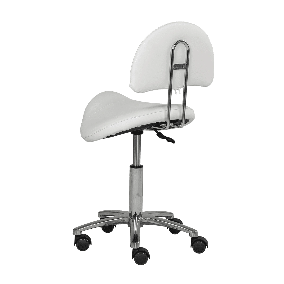Оригинальный стул мастера седло со спинкой МД-901А для применения в салонах красоты и парикмахерских. Это профессиональное оборудование с отличными характеристиками и стильным дизайном. В комплектацию стула входит анатомическое сиденье в виде седла и удобная спинка на металлическом хромированном каркасе. Для изготовления мягких элементов применяется качественный плотный поролон и экологически чистый, влагоустойчивый обивочный материал – экокожа. В нашем магазине купить стул мастера седло со спинкой МД-901А Вы можете по приятной цене.