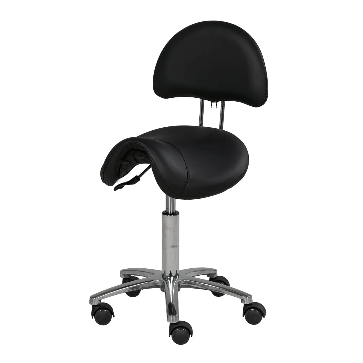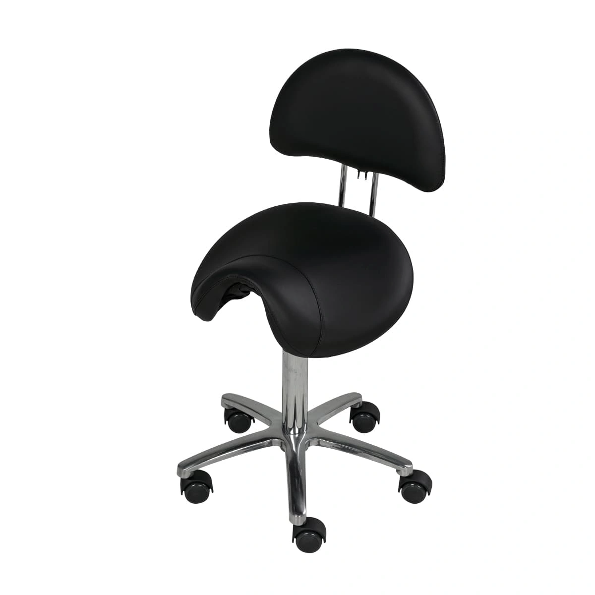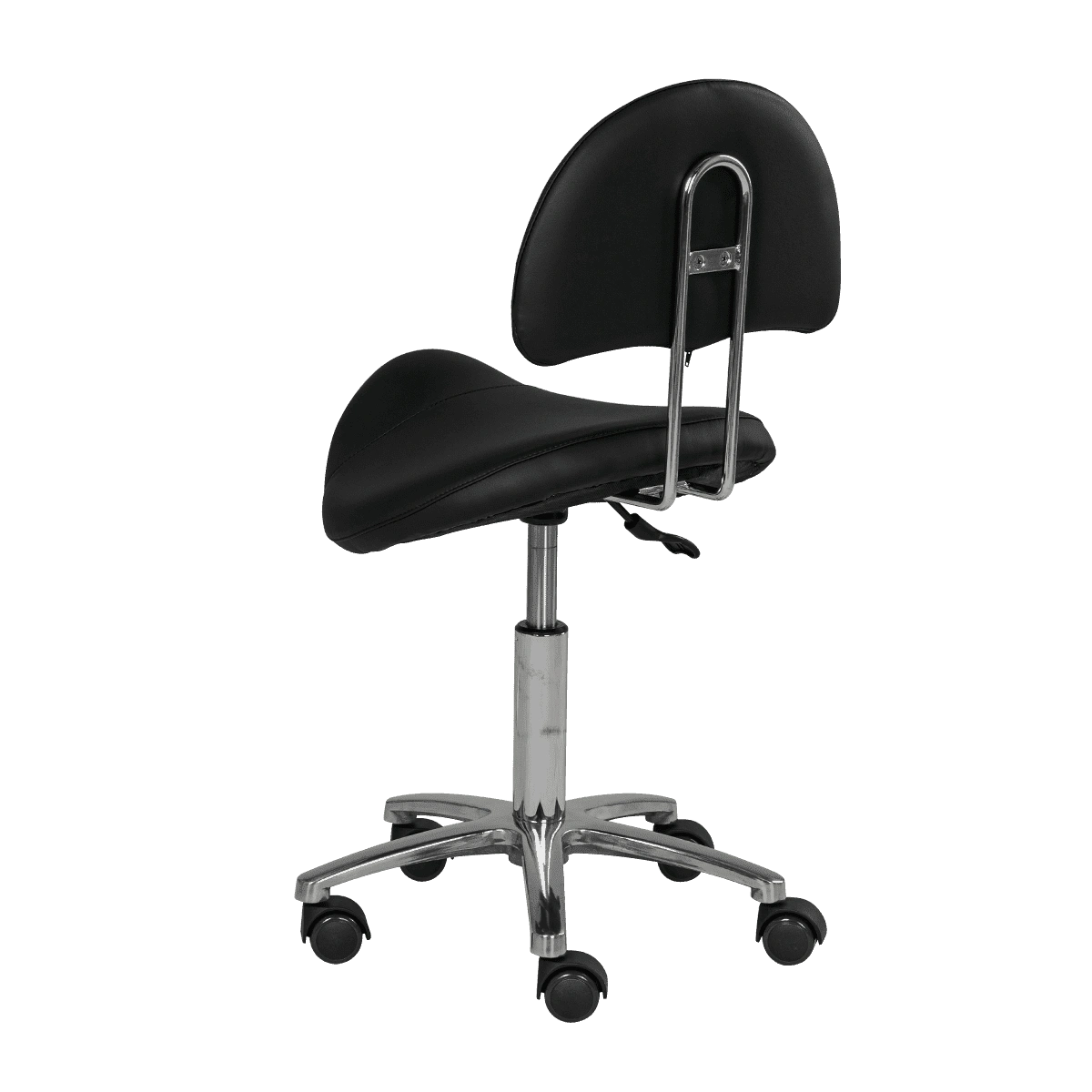 Оригинальный стул мастера седло со спинкой МД-901А для применения в салонах красоты и парикмахерских. Это профессиональное оборудование с отличными характеристиками и стильным дизайном. В комплектацию стула входит анатомическое сиденье в виде седла и удобная спинка на металлическом хромированном каркасе. Для изготовления мягких элементов применяется качественный плотный поролон и экологически чистый, влагоустойчивый обивочный материал – экокожа. В нашем магазине купить стул мастера седло со спинкой МД-901А Вы можете по приятной цене.