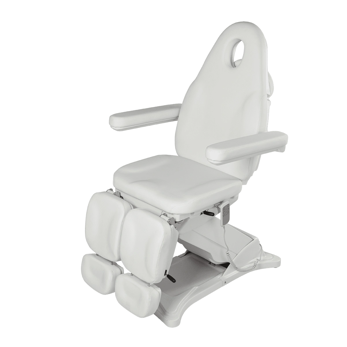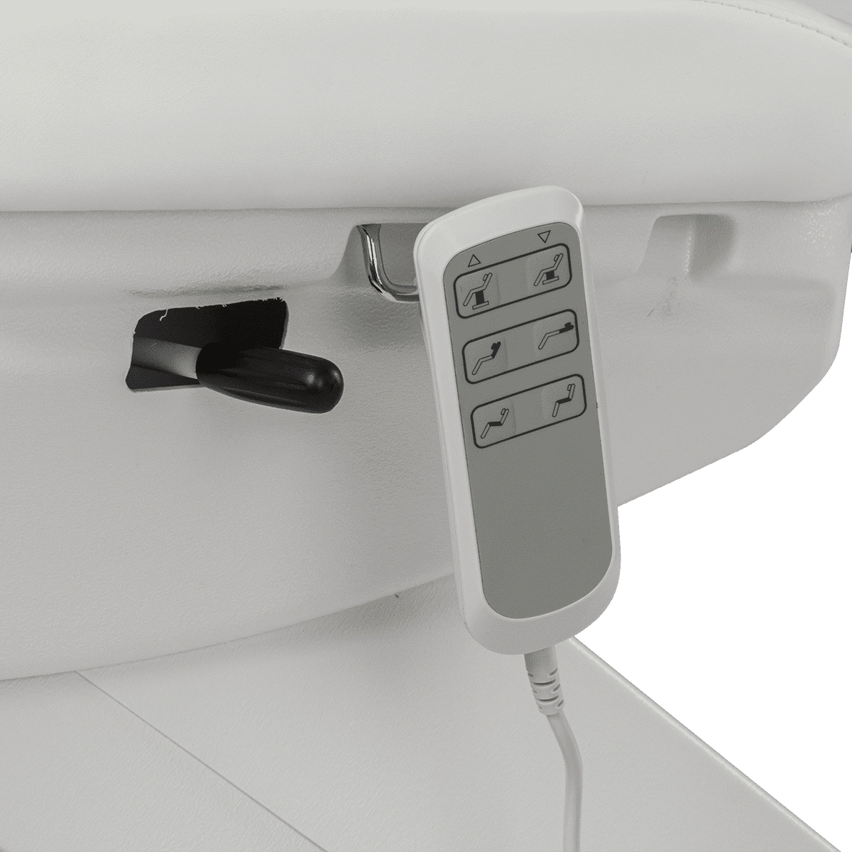 Комплектация: каркас, основание на подпятниках, сиденье, спинка, подголовник с вырезом для лица и съемной подушкой, мягкие элементы под ноги с выдвижными подпятниками, съемные подлокотники, электропривод (3 мотора) с пультом управления.