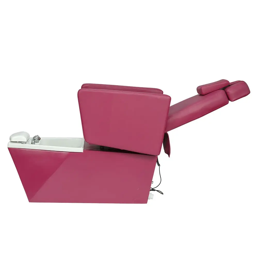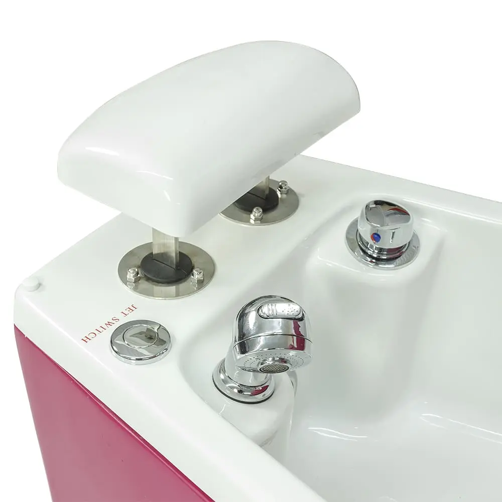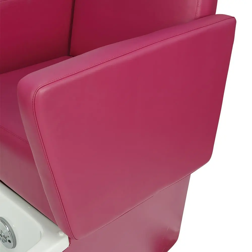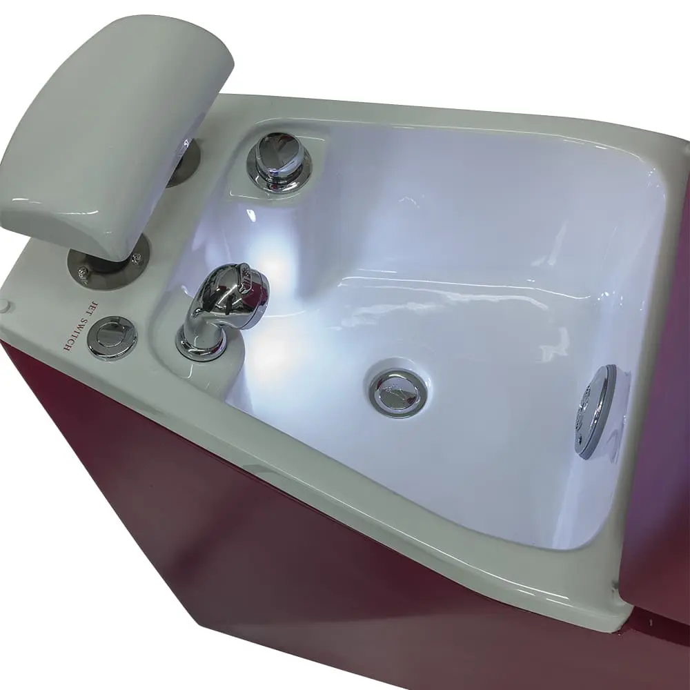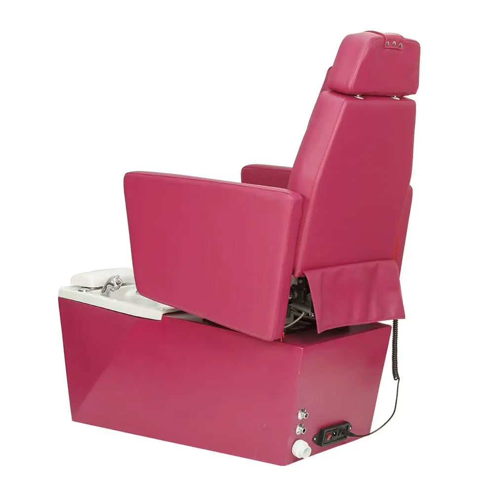 Каркас кресла из металла обеспечивает устойчивость конструкции. Благодаря поднимающимся подлокотникам посетитель без особых усилий сядет в кресло. Ванна выполнена из прочного акрила. В комплект входят сантехнические принадлежности и эффектная ЛЭД подсветка, которая может менять цвета. Обивка кресла выполнена из качественной экокожи, которая легко чистится и не боиться воздействия химических средств.