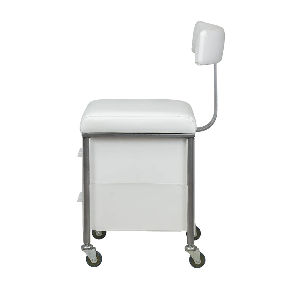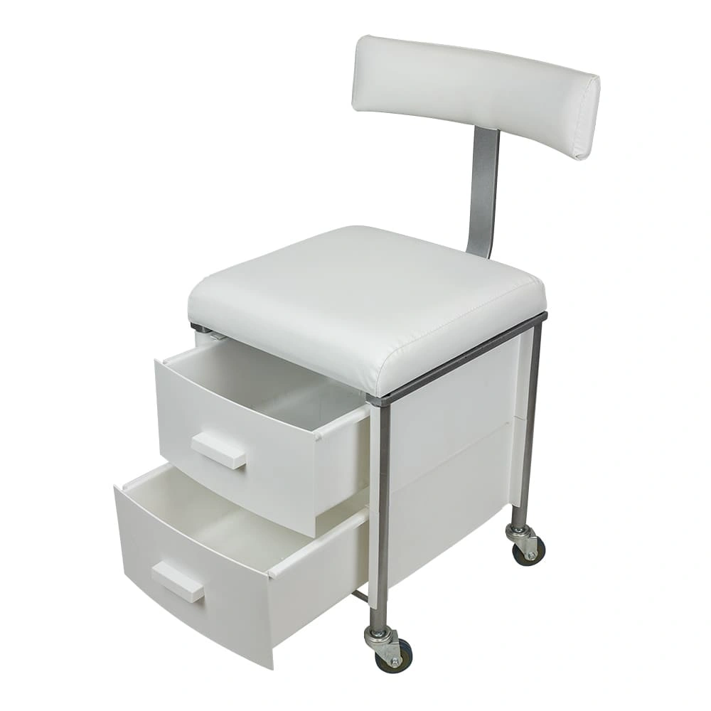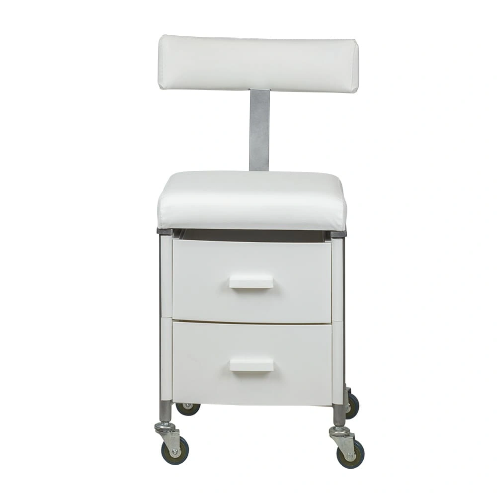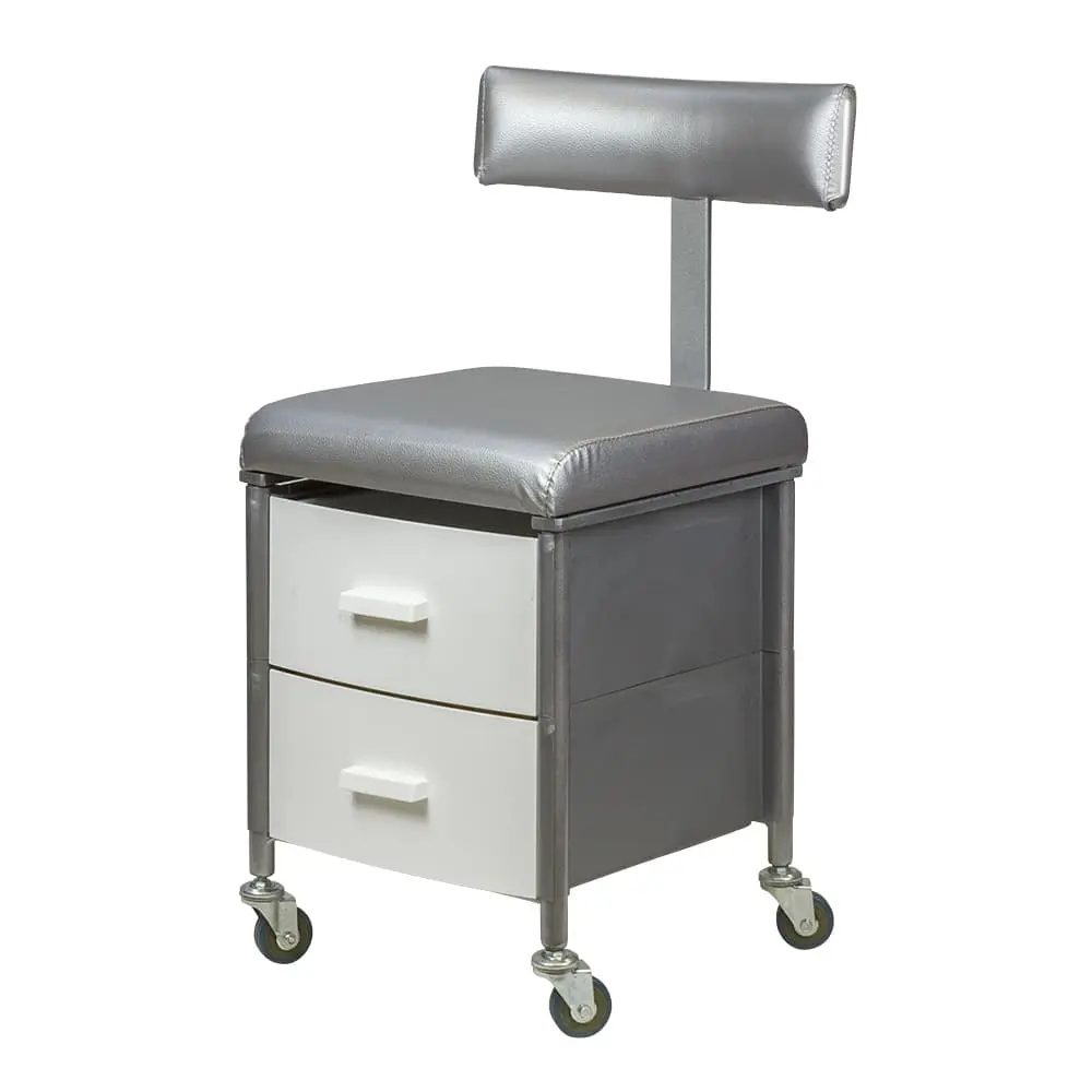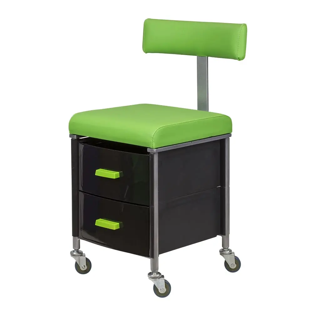 Стул укомплектован двумя выдвижными ящиками, где мастер может держать необходимые для работы инструменты и расходные материалы. Наличие мобильных колес позволит беспрепятственно перемещаться по рабочей зоне. При необходимости колеса можно зафиксировать специальными тормозами на каждом колесе.