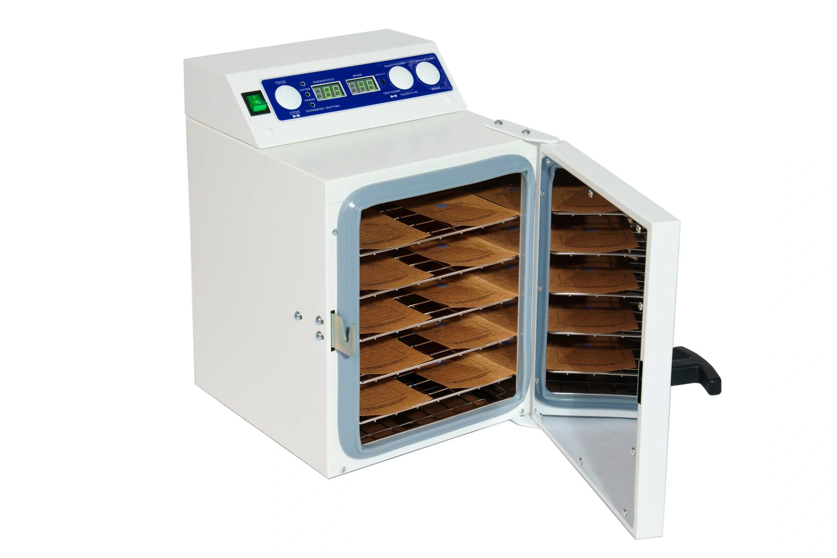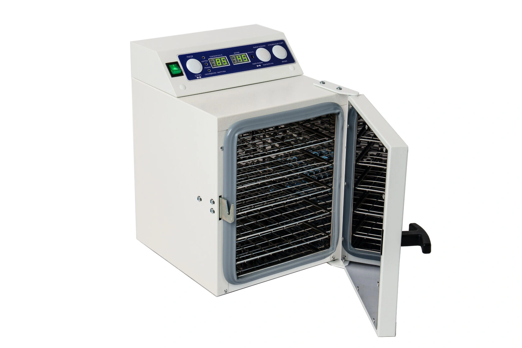 Стерилизатор "Ферропласт" при загруженной стерилизационной камере должен обеспечивать автоматическую поддержку температурных режимов в диапазоне от +85°С до +180°С и времени стерилизационной и дезинфекционной выдержки, а также пользовательского программируемого режима +50°С до +200°С, интервалом от 1 до 999 минут.