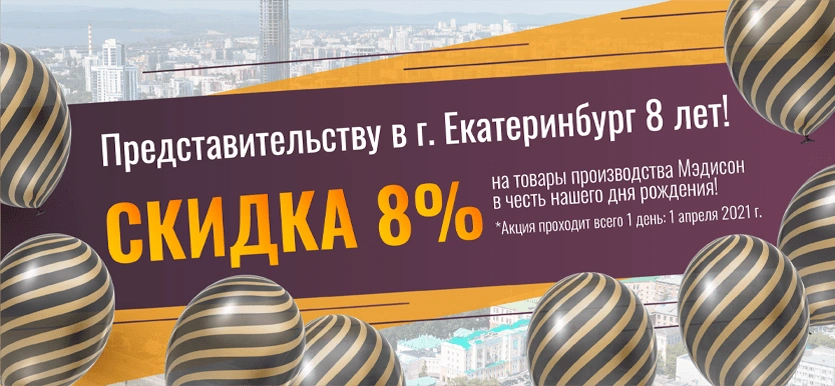И в наш день Рождения мы решили подготовить подарок для жителей Уральского региона – скидку 8% на товары собственного производства*.
